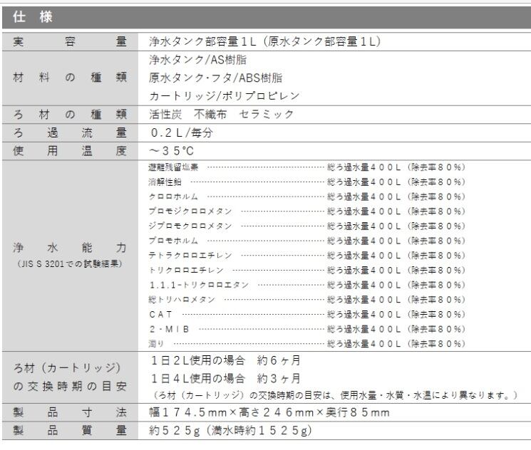 ※カートリッジ交換は定期購入(愛用者登録)が便利です。登録用紙をお付けします。カートリッジ代金は定期購入の場合、4800円(税別)です。